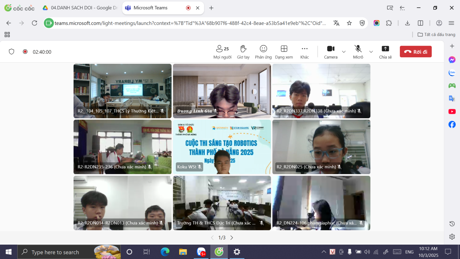 Ngày 03/10/2025, Cuộc thi Sáng tạo Robotics thành phố Đà Nẵng lần thứ I năm 2025 đã chính thức diễn ra trực tuyến với sự tham gia của 715 đội thi đến từ các liên đội Tiểu học và Trung học cơ sở trên toàn thành phố. Cuộc thi nhằm khơi dậy niềm đam mê khoa học công nghệ, phát triển năng lực số và tinh thần đổi mới sáng tạo trong học sinh.