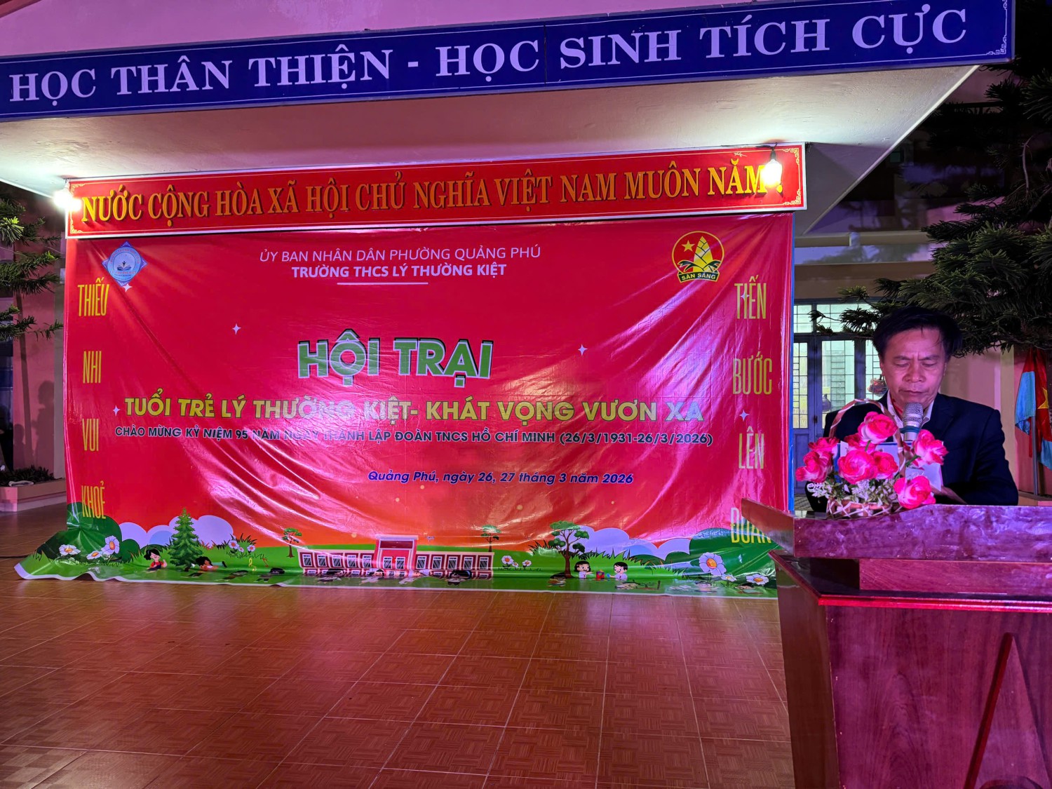 🤝 Nhằm tạo sân chơi lành mạnh, bổ ích, góp phần giáo dục truyền thống, rèn luyện kỹ năng sống và tăng cường tinh thần đoàn kết cho học sinh, Trường THCS Lý Thường Kiệt đã tổ chức Hội trại truyền thống năm 2026 với chủ đề “Tuổi trẻ Lý Thường Kiệt - Khát vọng vươn xa”.