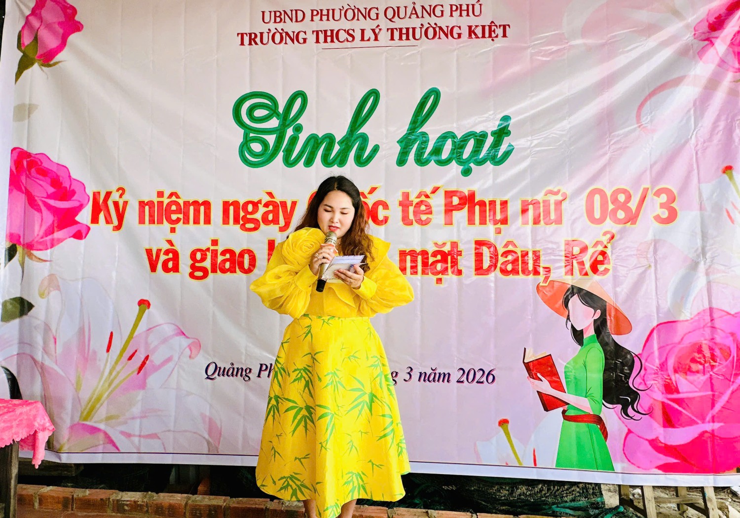 Nhân dịp kỷ niệm Ngày Quốc tế Phụ nữ 8/3, nhằm tôn vinh vai trò, ghi nhận những đóng góp của nữ cán bộ, giáo viên, nhân viên trong nhà trường, đồng thời tạo cơ hội giao lưu, gắn kết giữa các gia đình trong tập thể sư phạm; trường THCS Lý Thường Kiệt đã tổ chức buổi họp mặt thân mật vào lúc 10 giờ ngày 08/3/2026 tại Nhà hàng Cá Voi Xanh.