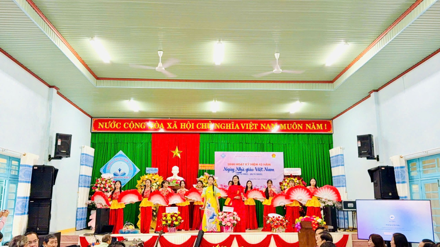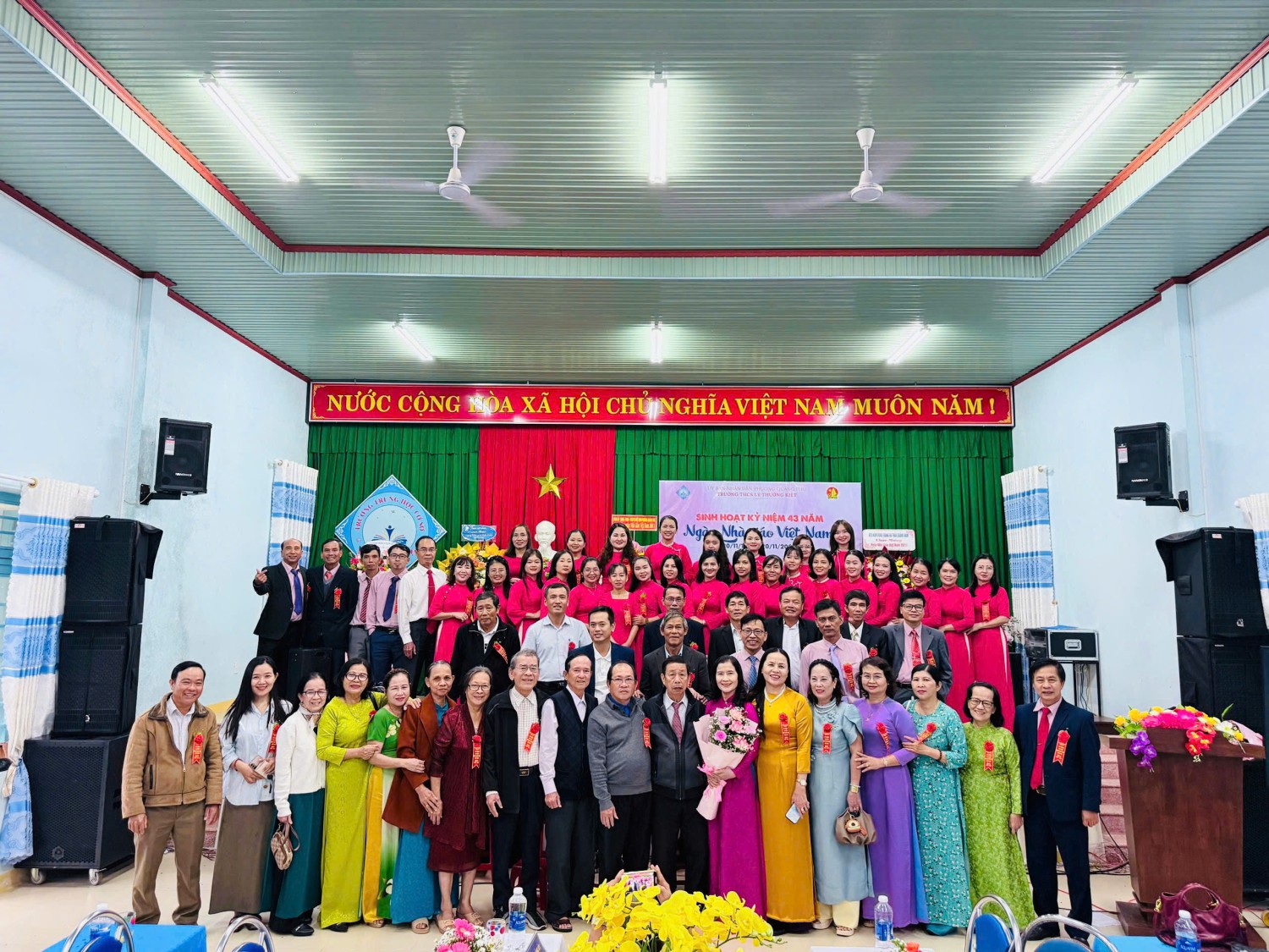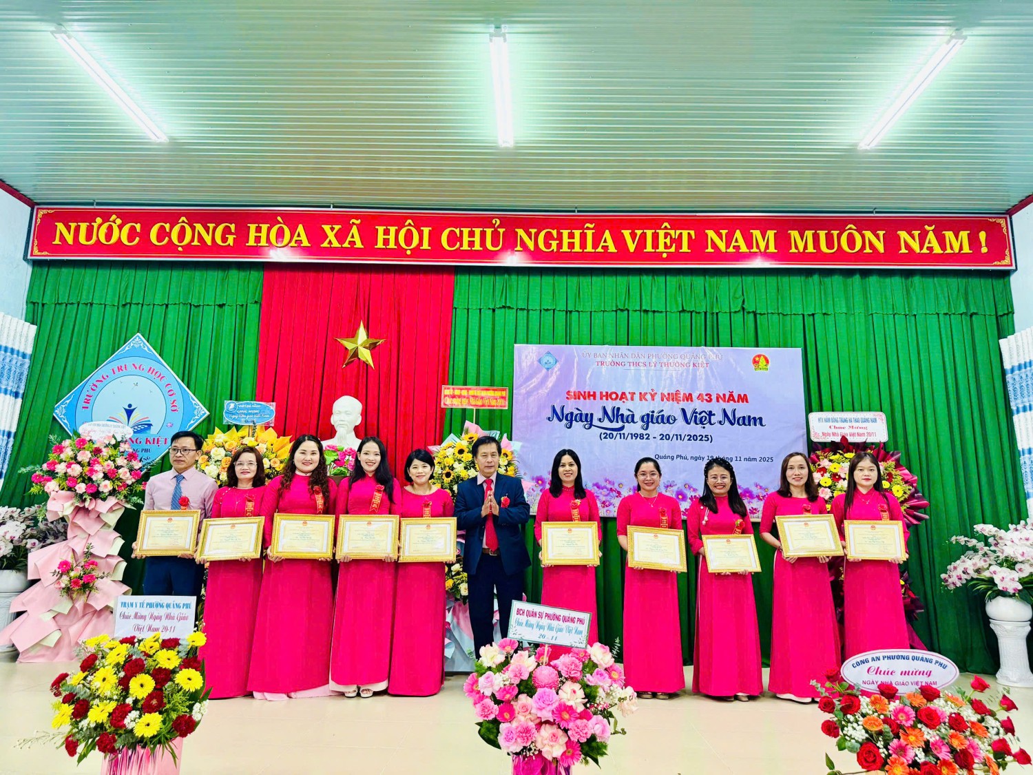 🗓️ Chiều nay, Trường THCS Lý Thường Kiệt đã long trọng tổ chức Lễ kỷ niệm 43 năm Ngày Nhà giáo Việt Nam (20/11/1982 – 20/11/2025) và tuyên dương – khen thưởng phong trào thi đua năm học 2024–2025. Đây là dịp đặc biệt để tập thể nhà trường bày tỏ lòng tri ân sâu sắc đến các thầy giáo, cô giáo – những người đã dành trọn tâm huyết, trí tuệ và tình yêu thương cho sự nghiệp “trồng người”.
