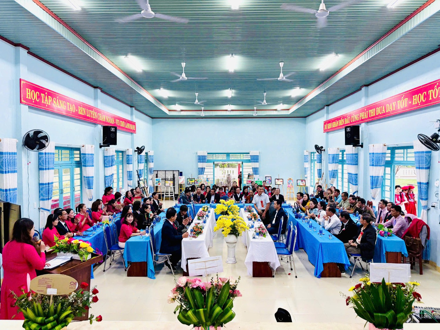 Buổi lễ diễn ra trong không khí ấm áp, đầy ý nghĩa với những bó hoa tươi thắm, những lời chúc mừng chân thành cùng những khoảnh khắc lắng đọng khi nhìn lại hành trình cống hiến bền bỉ của đội ngũ thầy cô giáo qua nhiều thế hệ. Mỗi nụ cười, mỗi câu chuyện được chia sẻ trong ngày lễ đã góp phần làm nên một 20/11 thật trọn vẹn và xúc động.